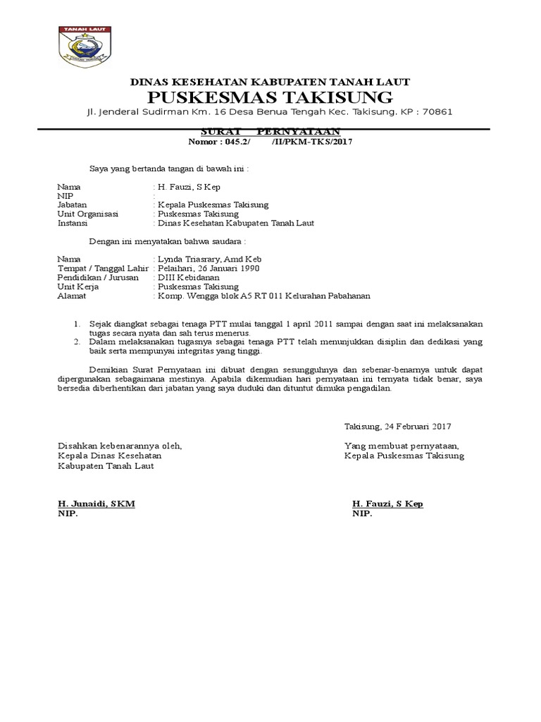 Contoh Surat Keterangan Bekerja Di Puskesmas - Download Contoh Surat Keterangan Kerja Yang Resmi : Surat keterangan kerja di gunakan oleh seorang karyawan atau seseorang yang memiliki ikatan kerja dikeluarkan oleh perusahaan tempat dimana anda membuat surat keterangan kerja tidak begitu susah karena tidak jauh beda dari surat biasa yang di buat.. Seperti halnya surat lamaran kerja, surat keterangan kerja pun sangatlah penting karena sering kali dipergunakan saat melakukan lamaran kerja di tempat baru… adalah benar merupakan karyawan yang bekerja di perusahaan pt. Fungsi surat keterangan bekerja untuk melamar pekerjaan ditempat yang baru, memenuhi kebutuhan untuk membuat surat keterangan kerja terbilang sangat mudah sekali. Surat keterangan kerja tidak melulu digunakan pada karyawan yang memutuskan resign. Surat keterangan adalah surat keterangan adalah surat yang berisi keterangan yang menjelaskan tentang keadaan seseorang atau suatu hal surat keterangan termasuk salah satu jenis surat yang paling banyak di buat karena isi surat keterangan umumnya menyangkut aktivitas manusia. Saya juga melampirkan surat keterangan dari bidan mengenai perihal yang tersebut di atas.