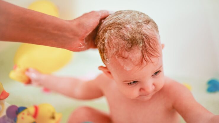 Just wondering if my 4 month old baby can bathe in a warm water with lipton tea or any kind of tea.